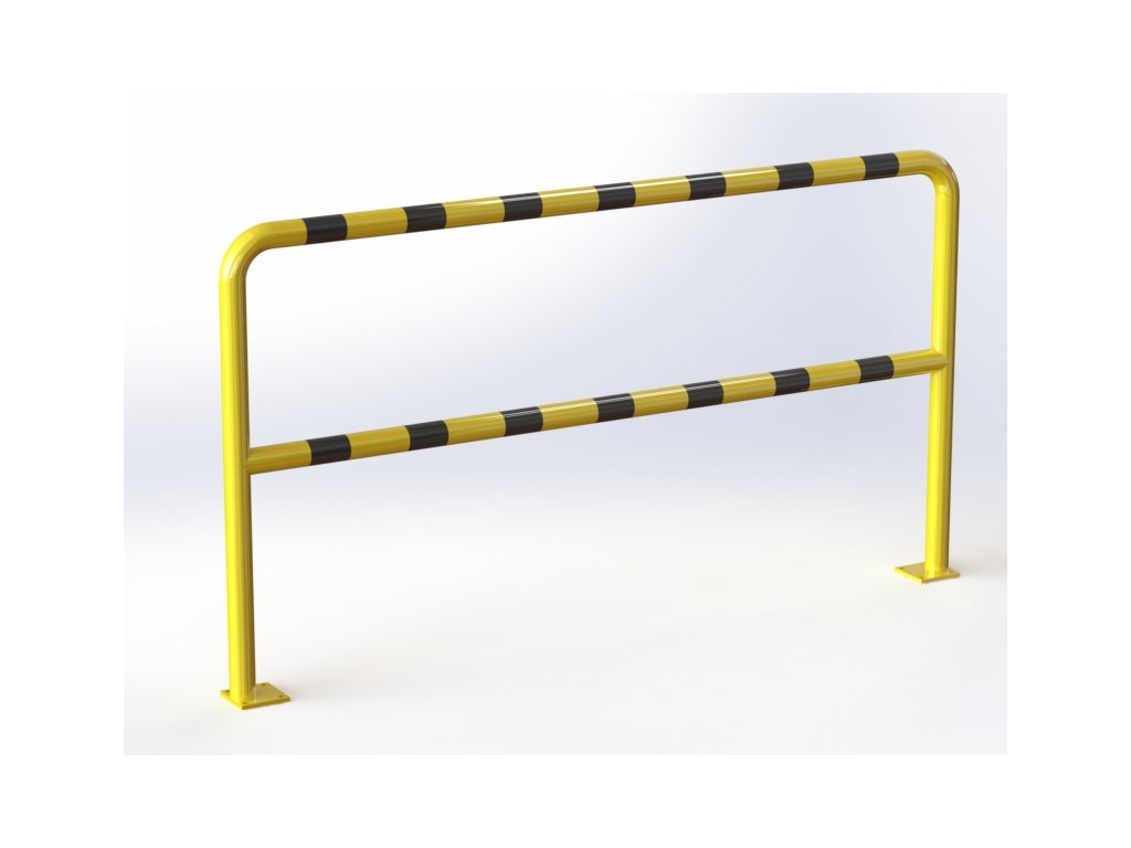 Oceľové zábradlie je vyrobené z ocele. Povrchová úprava je riešená práškovou farbou. Žltá dopravná farba RAL1023 zvyšuje viditeľnosť zábradlia a varuje pred prekážkami čo prispieva k vyššej bezpečnosti. Oceľové pätky zábradlia sú vyrobené z plechu v hrúbke 10mm. Zábradlie má čierne reflexné šrafovanie. Oceľovým zábradlím môžete vymedziť priestor pre pohyb paletových vozíkov a hydraulickej manipulačnej techniky. Slúži tiež k ochranné chodcov v areáli podnikov a k vymedzeniu pracovného priestoru. Možnosť využitia interiér aj exteriér